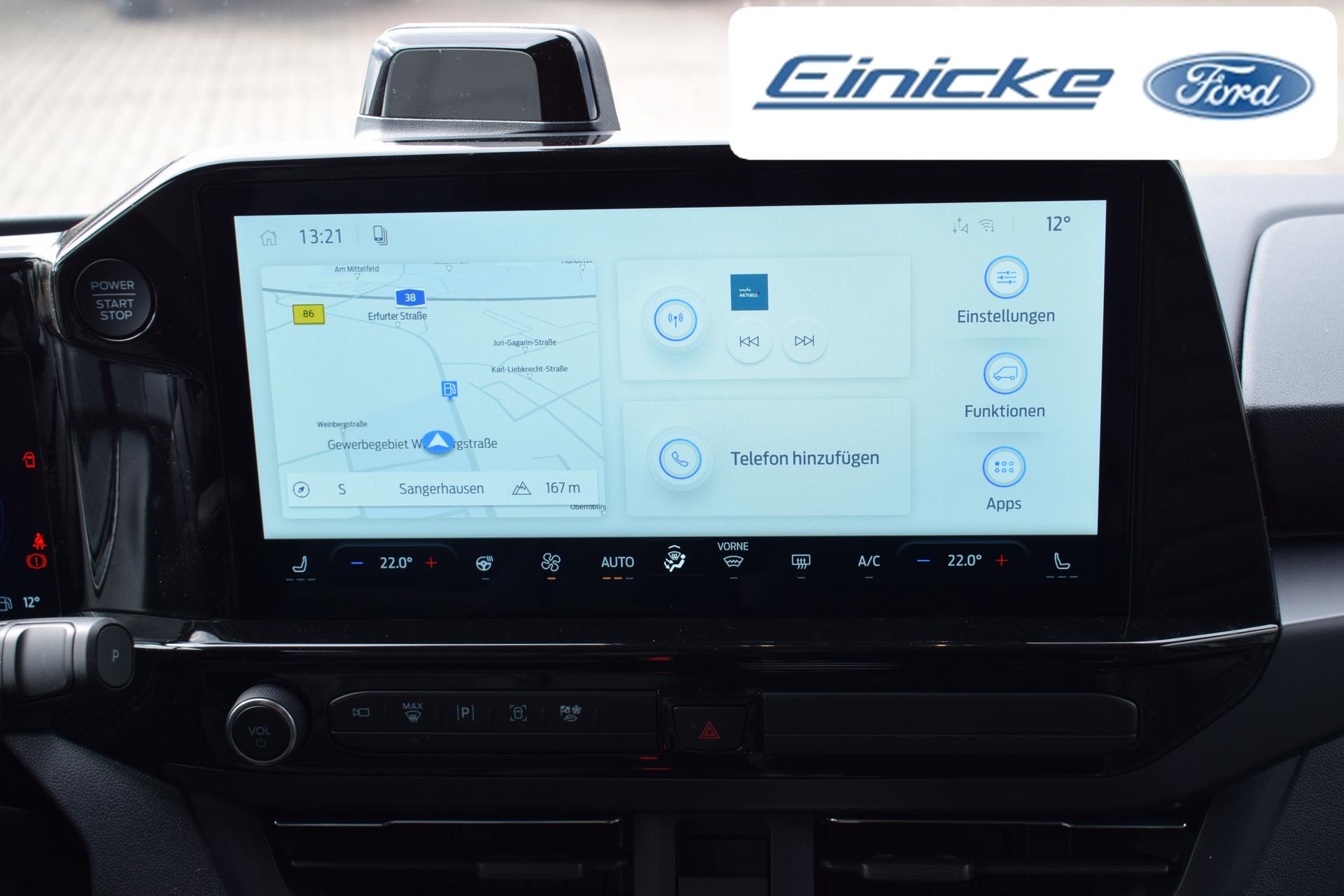 Navigationssystem mit 13" Touchdisplay & SYNC 4 inkl. DAB, Pre-Collision Assistent, Toter Winkel Assistent, Verkehrsschilderkennung, Falschfahrer Warnfunktion, Fahrspur-/Fahrspurhalte Assistent, intelligenter adaptiver Tempomat (ACC) inkl. Stop & Go Funktion, Rundumkamera)